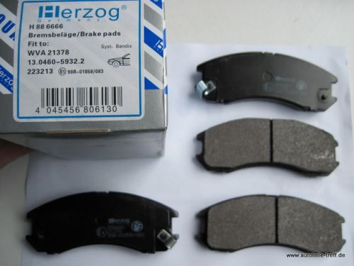 Bremsbeläge vorne Mazda 626 ( 3 ) Bj.5.87 - 7.91 und Ford ( USA ) Probe 1 Bj. 8.88 - 07.93. Bremssystem Bendix. Breite: 130 mm , Höhe: 52,5 mm Geprüfte Qualität von Herzog Germany.